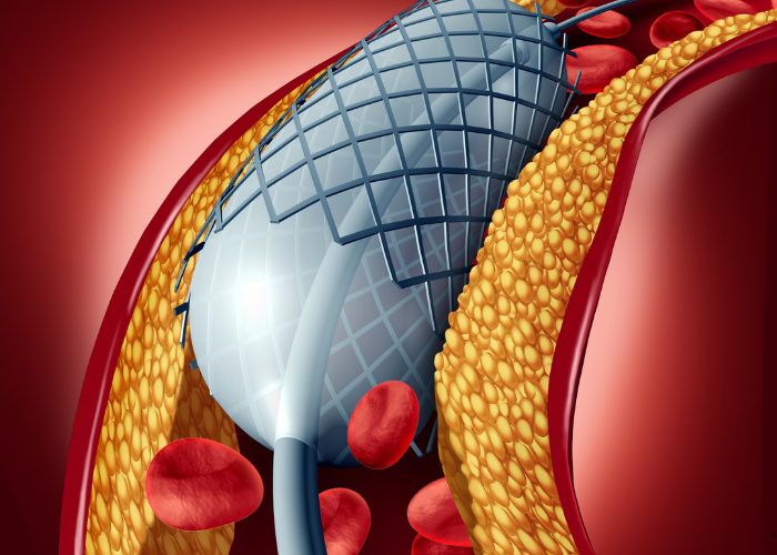In many cases, a stent (a tiny metal mesh tube) is placed to keep the artery open permanently.